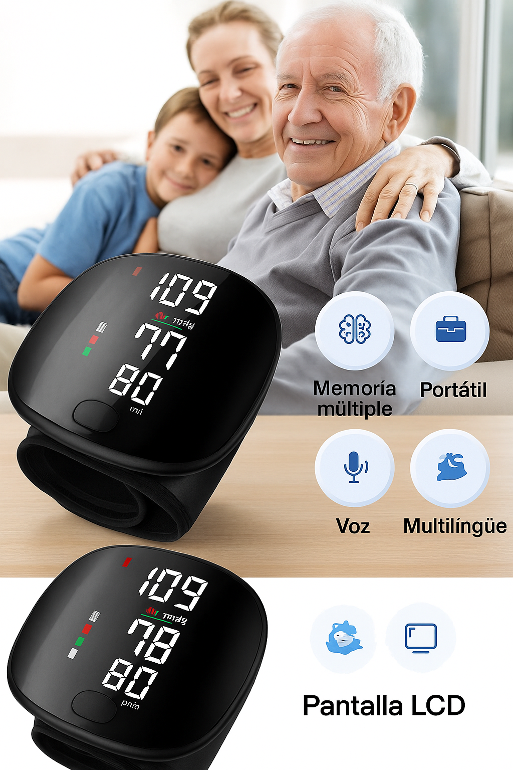 ¿Te preocupa tu presión arterial? Es momento de tomar el control. Nuestro monitor de presión arterial de muñeca está diseñado para hacer que el cuidado de tu salud sea fácil y conveniente.